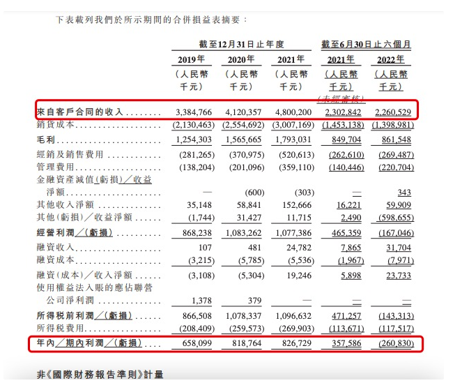 财务数据方面,招股书显示,卫龙2019—2022年上半年总收入分别为33.85亿元、41.2亿元、48亿和22.61亿;在2019—2021年,收获净利润分别为6.58亿、8.19亿、8.27亿元,对应净利率为19.4%、19.9%、17.2%,是行业平均水平的两倍左右。