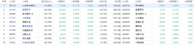 山东新华制药A股跌3.5%,H股微跌;复星医药A股跌超3%,H股跌超2%;诺诚健华A股跌超3%,H股跌超3%。