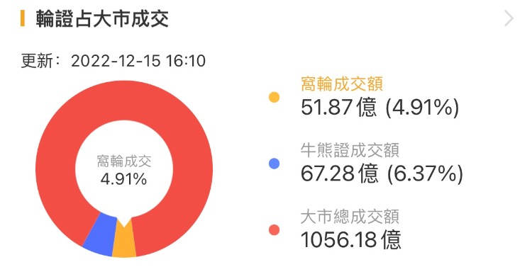 其中,窝轮总成交额为51.87亿港元,牛熊证总成交额为67.28亿港元。