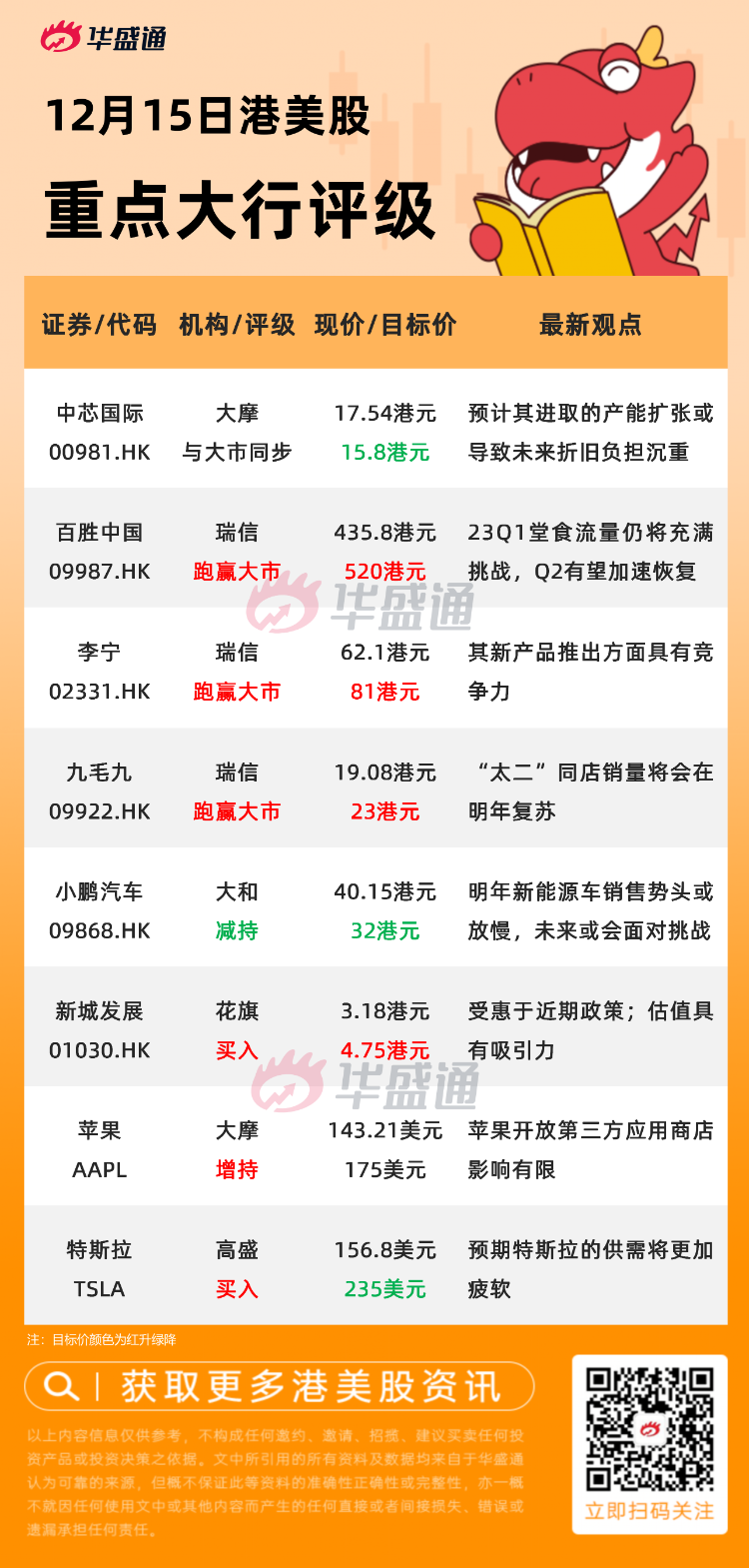 编者按:天风证券预计防疫主题仍将反复交易,看好海吉亚医疗、歌礼制药等;瑞信认为李宁能够跑赢大市,目标价升至81港元;大摩下调中芯国际目标价至15.8港元。