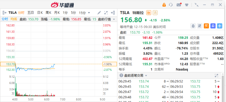 特斯拉盘前一度跌逾3%,遭马斯克再次出售,累计约2200万股, 近一年减持超过400亿美元