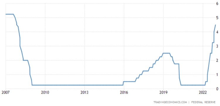 北京时间周四凌晨3点,美联储联邦公开市场委员会发布最新的利率决议。与市场预期一致,继此前连续四次加息75个基点后,本次会议FOMC将加息幅度放缓至50个基点,联邦基金利率区间由此上调至4.25%-4.50%,达到2007年12月以后的最高值。美联储同时宣布继续按照设定的路径展开缩表操作。