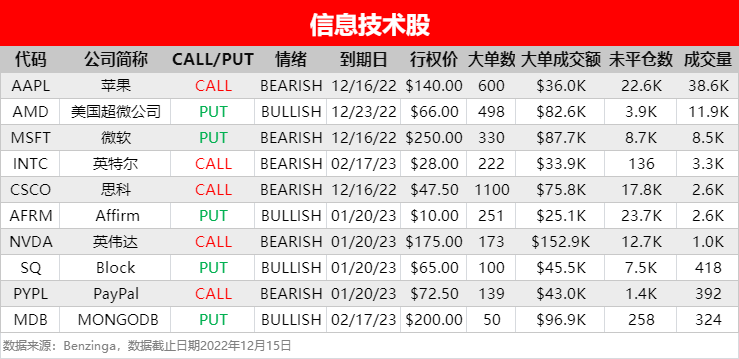 微软连续出现看跌期权异动大单! 隔夜盘中,该股出现12月16日到期、行权价为250美元的看跌期权大单。在前一个交易日(12月14日)微软也出现了12月16日到期、行权价为260美元的看跌期权大单。
