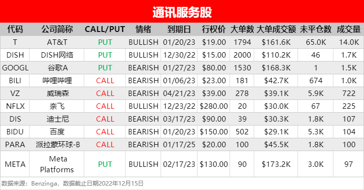 当日榜单TOP :AT&T、DISH网络、谷歌A、哔哩哔哩、威瑞森、奈飞、迪士尼、百度、派拉蒙环球-B、Meta Platforms