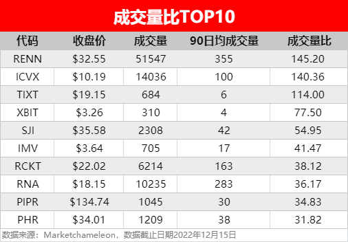 疫苗生物技术公司ICOSAVAX $ICVX 报告了积极的实验数据,隔夜上涨超14%,相对期权成交量比达140.36,位居第二。