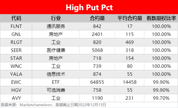 注:High Call Pct/High Put Pct 是指相关期权标的当前看涨/看跌比例大小,该比值越高意味着该期权标的看涨/看跌的合约占比越高。