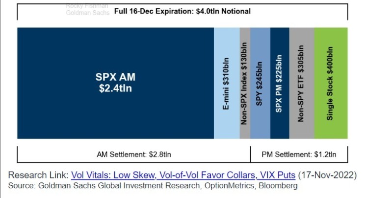 美股甚至全球股市,即将迎来关键的一天,届时与指数和个股挂钩的期权持有者要么选择展期现有仓位,要么新开仓看涨或看跌期权。高盛集团策略师Rocky Fishman表示,他和他的团队估计这些期权的名义价值为4万亿美元。