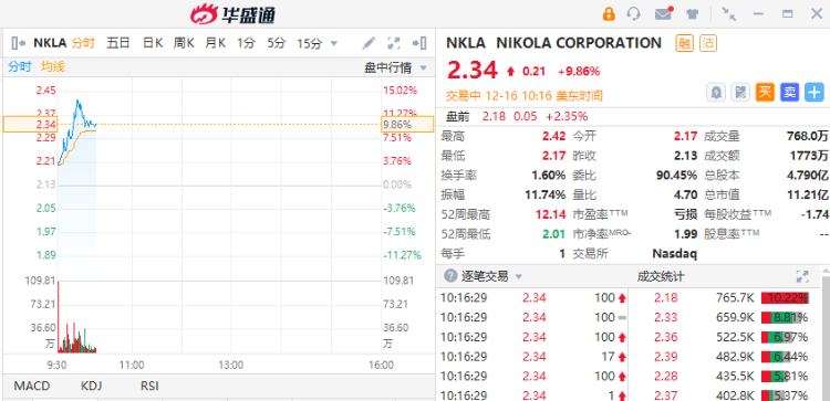 部分新能源车股走高,Nikola $NKLA 涨9.86%,小鹏汽车涨超6%,Lordstown Motors $RIDE 涨3.53%,理想汽车涨3.48%,特斯拉跌2.27%。