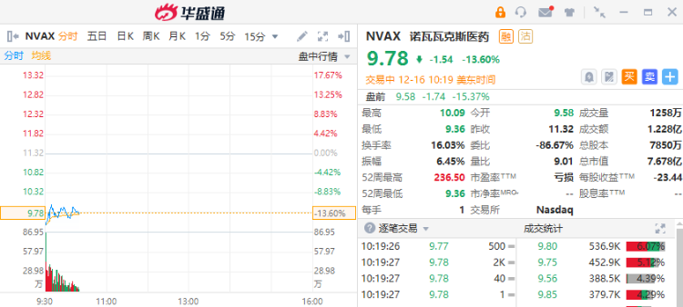 诺瓦瓦克斯医药跌13.60%,该公司此前宣布公开发行1.25亿美元的普通股,并透露英国将把新冠疫苗的供应协议削减一半。
