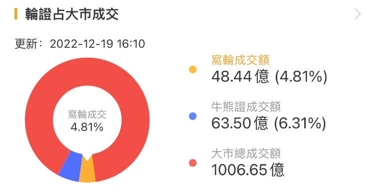 其中,窝轮总成交额为48.44亿港元,牛熊证总成交额为63.50亿港元。
