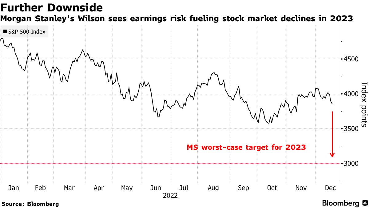 华尔街大空头之一的摩根士丹利首席美股策略分析师威尔逊(Mike Wilson)周一表示,美国股市将迎来全球金融危机以来最糟糕的一年,企业利润也将遭遇同样的命运。