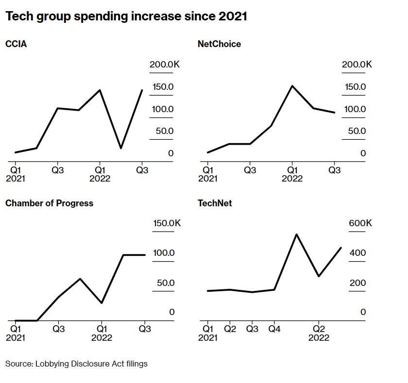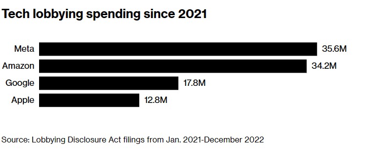 在本周,一项旨在约束美国最大规模科技公司的两党立法努力宣告失败,亚马逊(AMZN.US)、苹果(AAPL.US)、谷歌(GOOGL.US)和Meta(META.US)等大型科技巨头主导的大规模游说活动可谓颇见成效。