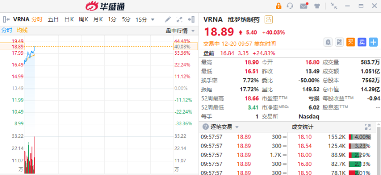 维罗纳制药 $VRNA 盘初大涨40%,现报18.89美元。此前该公司宣布其3期ENHANCE-1试验取得积极结果,该试验评估Ensifentrine用于慢性阻塞性肺疾病(COPD)的维持治疗;该试验成功达到了其主要和次要终点,在肺功能、症状和生活质量指标方面有显著改善。