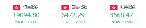 截至周二收盘,港股恒指跌1.33%,报19094.80点;国企指数跌2%,红筹指数跌2.09%。歌礼制药暴涨53%,龙光集团跌13.57%,宝龙地产跌近12%,小鹏汽车跌近7%。