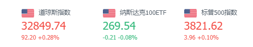 道指周二涨0.28%,报32849.74点;纳指涨0.01%,报10547.11点;标普500指数涨0.10%,报3821.62点。特斯拉收跌8.05%,Meta Platforms收高2.28%,Moderna收高5.94%。