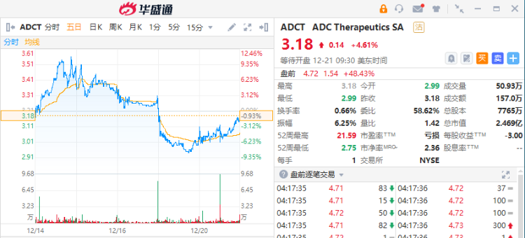 ADC治疗公司( $ADCT )盘前涨48%,该公司周三表示,它的Zynlonta药物已获得欧盟委员会的有条件上市许可,该药物用于治疗复发或难治的弥漫性B细胞淋巴瘤(一种癌症)。