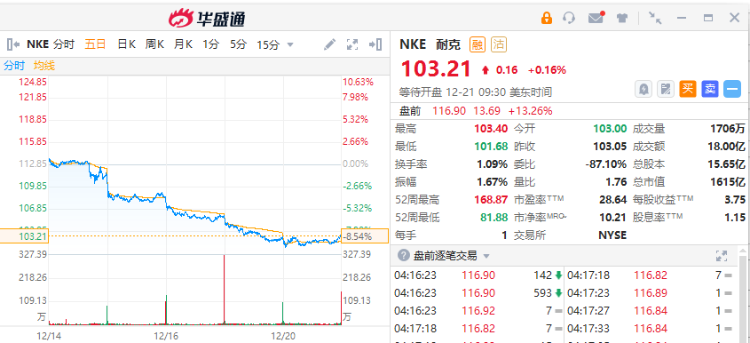 耐克盘前涨超13%,此前公司2023财年第二季度营收同比增长17%至133.2亿美元,好于市场预期。
