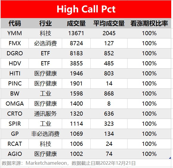 - 当日Call单比率达到100%的个股为24只,成交量超过1000的有13只。中概股满帮 $YMM 期权成交量13671,看涨期权比率100%。