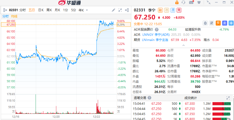 - 李宁:近期运动品牌板块较为活跃,机构称在消费场景放开后率先复苏。