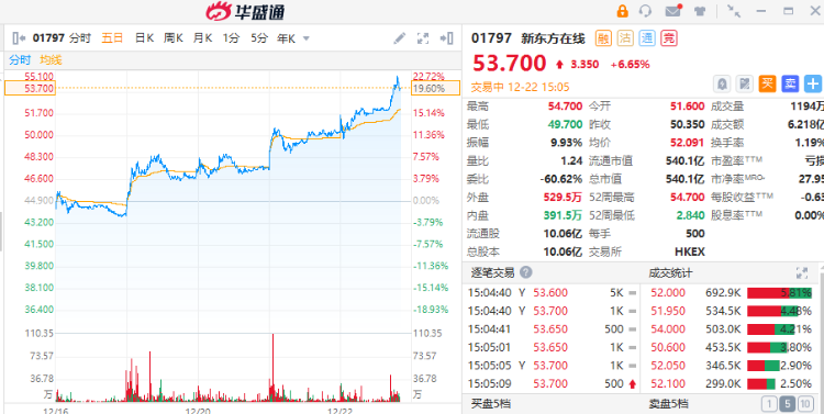 - 新东方在线:职业教育再迎重大利好消息,新东方在线近一周涨24%;