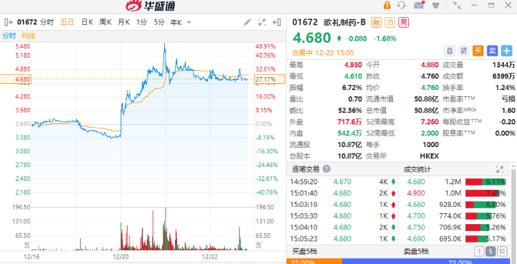 - 富瑞发布研究报告称,予歌礼制药-B(01672)“买入”评级,认为其销售额将持续增长,市场份额不断扩大,同时也拥有待批准及商业化的关键资产,目标价由4.4港元升至5港元。