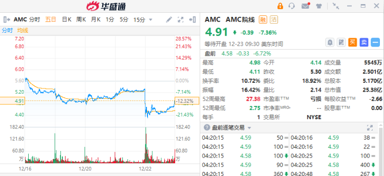 其他美股方面,AMC院线美股盘前跌超6%,其优先股(代码 $APE )盘前涨27.5%,此前该公司宣布1.1亿美元新融资方案,此外公司将寻求召开特别股东会议,对董事会的提议进行投票,其中包括将APE优先股转换成AMC普通股,以及以1:10的比例反向拆分AMC普通股。