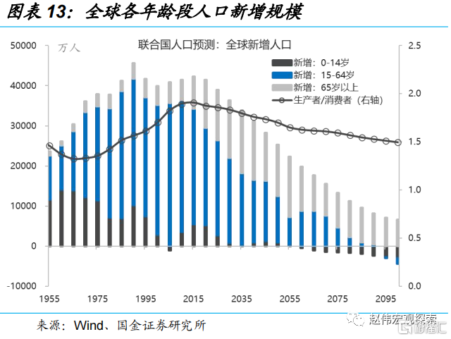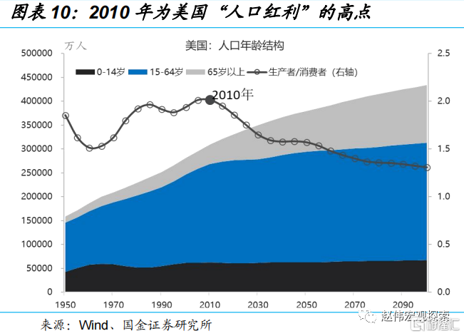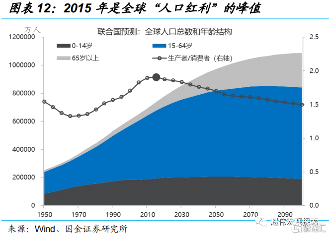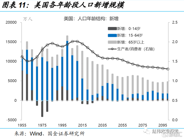 2010年是美国“人口红利”(生产者/消费者比例)的顶点。从2011年开始,战后“婴儿潮”时代(1946年至1964)出生7,600万人就已经陆陆续续地进入老龄化阶段,这一个过程将持续到2029年(持续18年)。曾经,中国的“人口红利”就是全球的“人口红利”,但中国人口时代红利渐行渐远。并且,劳动供给问题已不再是美国或中国的问题,而是全球性问题。因为2015年是全球“人口红利”的峰值。美国劳动力短缺是个中期约束,劳动工资涨幅短期内难以回到疫情前的平均水平(3-4%)。
