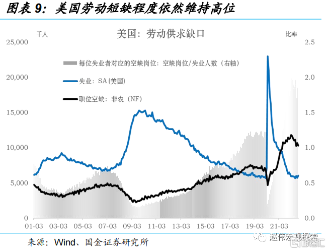 重申:2023年美国整体或核心通胀趋于下行,但要提醒的是,等到非核心商品和住房的高基数效应消失后,工资主导的非住房核心服务价格决定了通胀压力仍将存在。所以,在一致预期之外,应警惕通胀的二次反弹风险。这是美联储一直警惕“价格-工资”螺旋的原因。