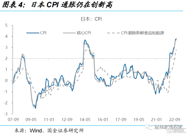 截止到2022年底,在西方主要经济体中,除日本外,美国、欧元区和英国的通胀率的高点均已经出现。美国CPI同比的高点出现在6月,欧元区和英国为10月。日本大概率会在12月达到高位,明年上半年进入下行通道。这是全球供应链持续修复、原油等大宗商品价格持续下行、重开后“被压抑的需求”动能放缓,以及全球央行持续收紧货币政策的结果。市场对2023年通胀大缓和有高度共识,但对通胀的长期中枢水平是多少尚未形成定论。