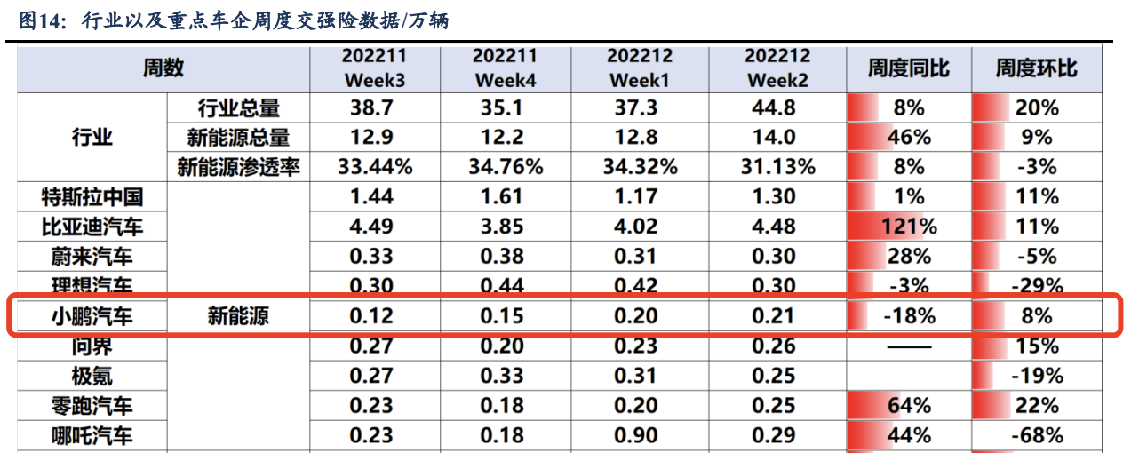 值得注意的是,此前销量持续承压的小鹏汽车(09868.HK)12月前两周交强险上险量总计约4100辆,在主流新能源车企中排名仍然靠后。