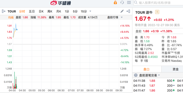中概旅游股盘前走高,途牛(TOUR)涨11.38%,携程(TCOM)涨4.00%。其他热门中概股方面,小鹏汽车(XPEV)涨近3%,蔚来汽车(NIO)、阿里巴巴(BABA)、哔哩哔哩(BILI)涨约2%。