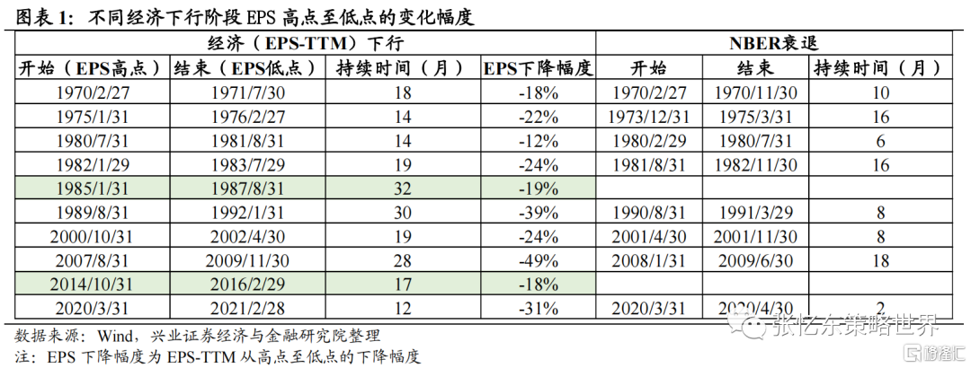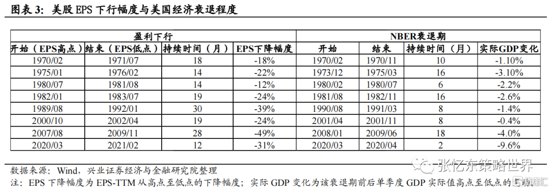 美股EPS下行幅度与美国经济衰退程度并非成正相关关系