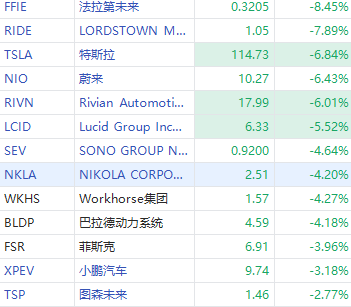 美新能源车板块齐挫,法拉第未来跌超8%,蔚来、Rivian跌超6%,Lucid跌超5%。