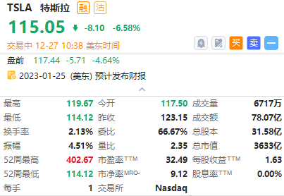 特斯拉跌超6%,现报115.05美元,股价创2020年9月以来新低。据悉,特斯拉计划在1月份在其上海工厂实施减产计划,将本月开始的减产计划延长至明年。