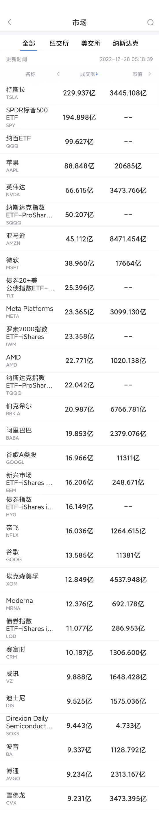 以下为美股当日交易最活跃的20只股票(按成交额):