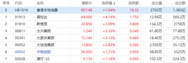 12月28日讯,香港本地消费、旅游股早盘集体走强,香港中旅现涨超4%,携程集团、同程旅游涨超3%;普拉达、新秀丽涨4%,太兴集团、大家乐集团涨超3%。