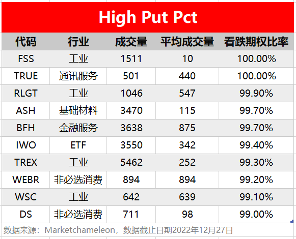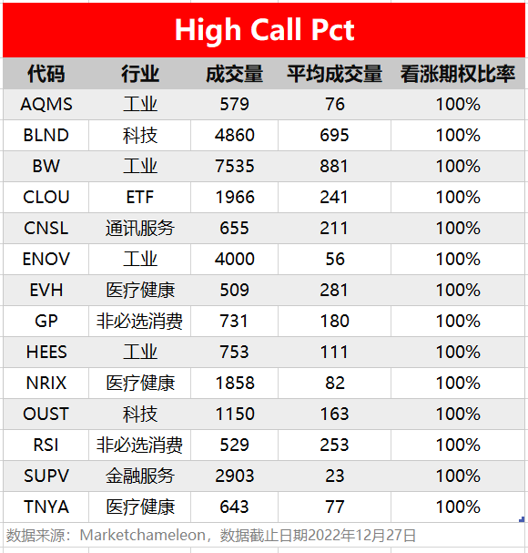注:High Call Pct/High Put Pct是指相关期权标的当前看涨/看跌比例大小,该比值越高意味着该期权标的看涨/看跌的合约占比越高。