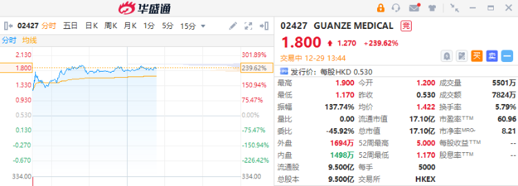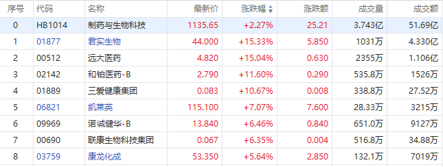 12月29日讯,港股医药股午后持续走高,截至发稿,医学影像供应商GUANZE MEDICAL首日涨超240%,君实生物现涨超15%,凯莱英、诺诚健华-B涨超6%,康龙化成涨超5%。