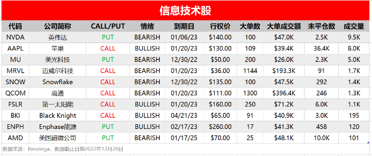 当日榜单TOP:英伟达、苹果、美光科技、迈威尔科技、Snowflake、高通、第一太阳能、Black Knight、Enphase能源、美国超微公司。