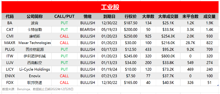 当日榜单TOP:波音、卡特彼勒、康明斯、Maxar Technologies、普拉格能源、伊利诺伊机械、西南航空、Li-Cycle Holdings、Enovix、联邦快递。