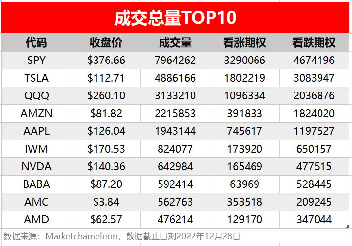 1.期权成交总量TOP10