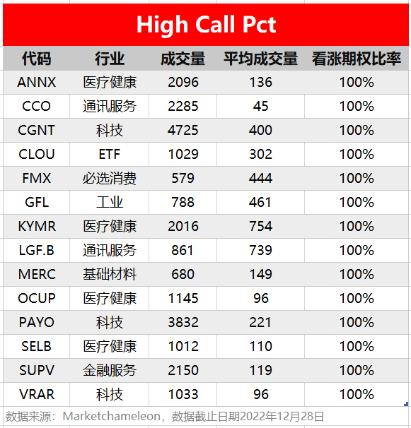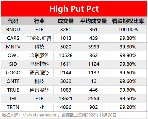 注:High Call Pct/High Put Pct是指相关期权标的当前看涨/看跌比例大小,该比值越高意味着该期权标的看涨/看跌的合约占比越高。
