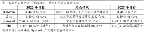 据四大矿山季度报告披露,淡水河谷与FMG上调产量目标,上调幅度为900万吨,力拓与必和必拓则维持不变。其中,淡水河谷将其球团矿生产目标提高200万吨,铁矿石产量维持不变;FMG新财年发运目标上调900万吨。保守计算,我们预估23年四大矿山产量增加900万吨至11.27亿吨。