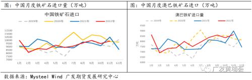 需求端,23年预计中国粗钢和生铁产量同比增长2800万吨和300万吨,废钢供应缓解导致铁水增幅不如粗钢。铁水增量折合进口矿需求增加400万吨。供需双增,但供应增幅预期大于需求增幅预期。年内分节奏看:上半年预期供减需增,库存保持偏低水平。一方面,需求呈现上升趋势,在钢厂库存水平较低背景下,春节后钢厂复产提振铁矿石需求;另一方面,一季度为澳巴雨季,发运受影响,铁矿石进口量有季节性下降预期。