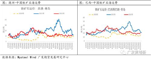 上半年海运费波动幅度较大,对中国到港铁矿石成本影响较大,主因俄乌冲突对全球航运造成不利影响,体现在燃料成本抬升、贸易路线调整与海运能力受限。随着全球物流逐步恢复,下半年海运费价格中枢回归合理区间。截至12月15日,西澳-青岛航线运费为8.7美元,同比下降1美元;巴西图巴朗-青岛航线20.8美元,同比下降3美元。
