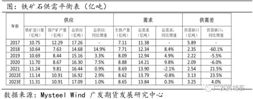 综上所述,明年全国铁矿石供需双增,但供应增幅(1.0%)大于需求(0.3%),供需平衡有边际宽松预期。
