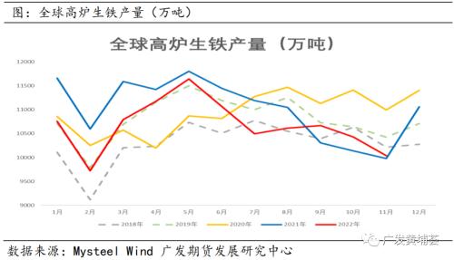 2022年1-11月全球生铁产量为11.7亿吨,同比下降3801.8万吨(-3.1%)。一方面,俄乌冲突导致两国生铁产量降幅较大,1-11月同比下降1534.8万吨(-22.4%)至5327.1万吨;另一方面,欧美因加息,经济放缓,钢材需求走弱,生铁产量缺乏上行驱动力。考虑到明年海外经济下行压力较大,我们预计明年铁矿发往中国比例将进一步上升。