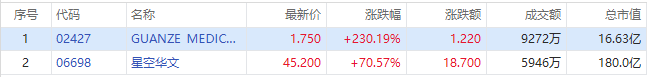 华盛资讯12月29日讯,医学影像供应商GUANZE MEDICAL首挂收涨230.19%,一手账面浮盈6100港元,全日成交额超9272万港元。