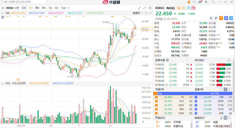 - 海底捞是全球领先、快速增长的中式餐饮品牌,主打火锅品类。12月28日, 南向资金增持海底捞555.30万股,港股通最新持有流通股比例为4.18%。