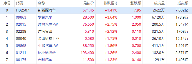 12月30日讯,港股汽车股集体上涨,零跑汽车涨3%,理想汽车、广汽集团涨超2%,小鹏汽车-W、比亚迪股份现涨超1%。